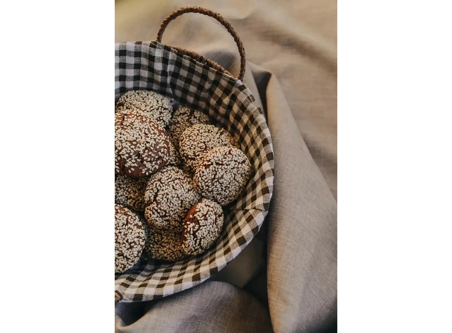 Состав: мука в/с, масло сливочное, сахар, яйцо куриное, апельсин, шоколад, кунжут