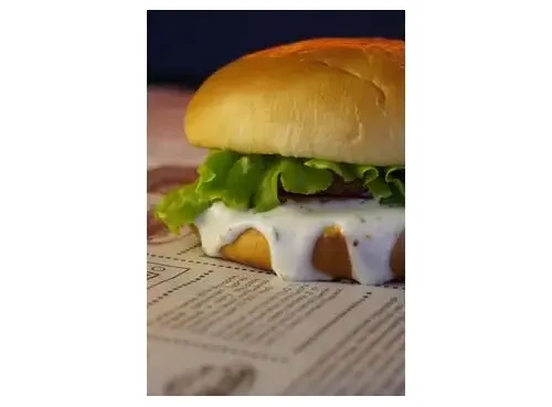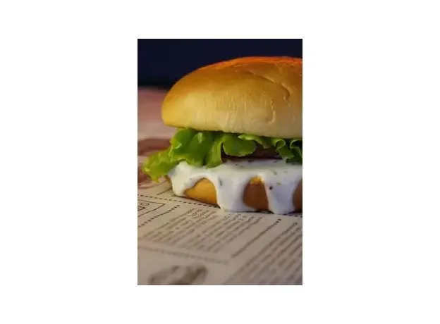 Булочка, наггетсы куриные, лист салата, соус 1000 островов, соус чесночный, томат