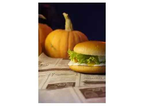 Булочка, наггетсы куриный, сыр чеддер, рукола, соус чесночный