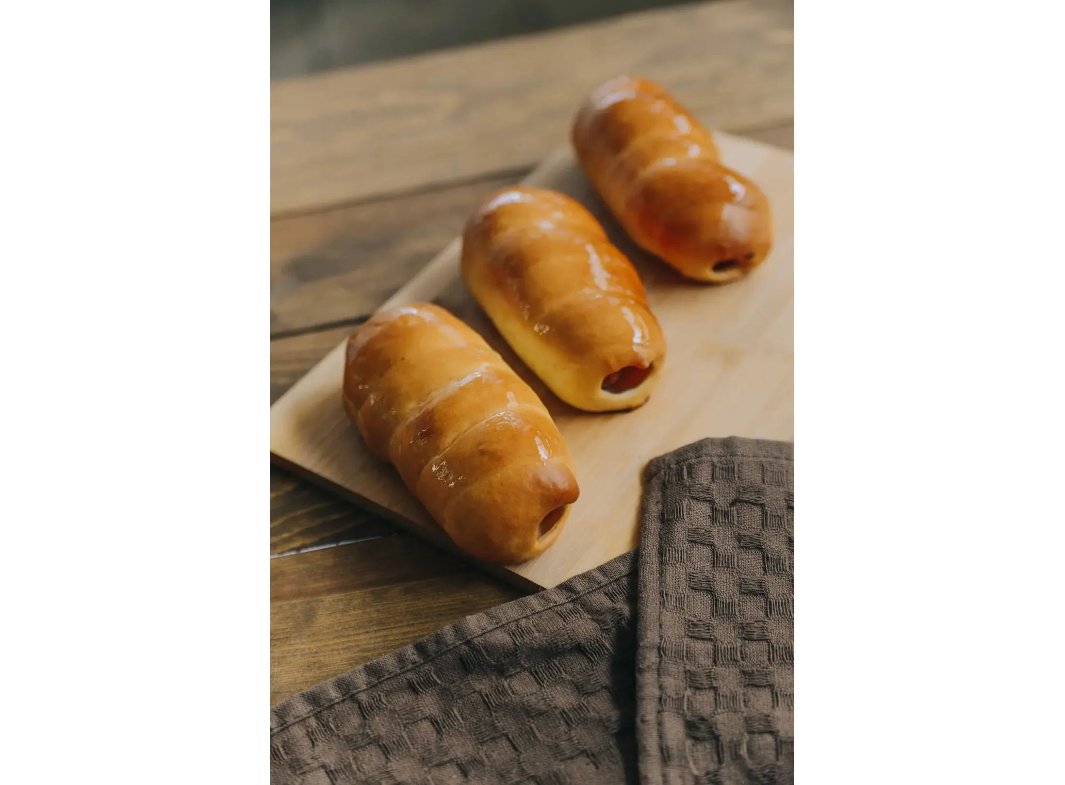 Состав: тесто дрожжевое (мука в/с, яйцо куриное, вода, соль, сахар, масло сливочное), сосиска куриная