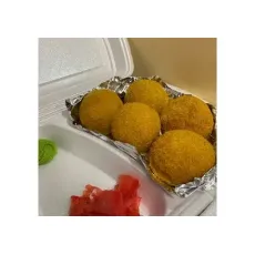 Рисовые шарики с копченой курицей и сливочным сыром, обваленные в кляре и сухарях панко, жареные во фритюре. 5шт.