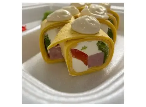 Состав:Сырная тортилья Творожный сырВетчина Сладкий перецСалатУкрашена соусом цезарьПорция - 8шт.