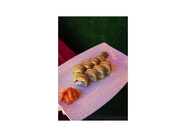 Жареный во фритюре ролл с сыром, огурцом и ломтиком бекона.Подается с ореховым соусом. 8 шт.