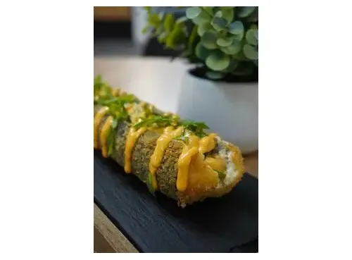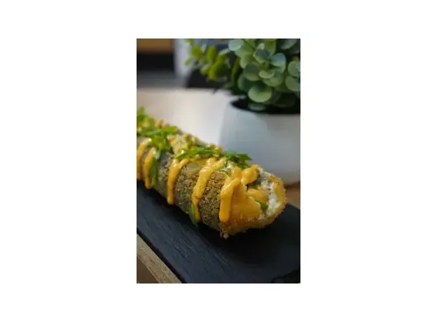 Хрустящая панировка ролл-дога сочетается с нежной сочной начинкой и прекрасно дополняется рисом.Начинка: лосось, соус спайси и сливочный сыр