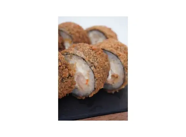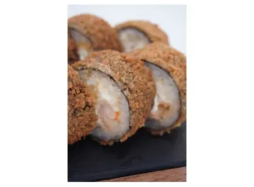 Горячий ролл с нежным сливочным сыром, королевской креветкой и соусом спайси, жареный во фритюре