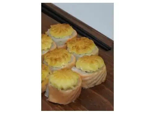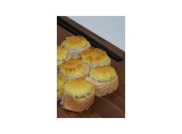 Ролл с охлажденным лососем и нежным сливочным сыром, запечённый под шапкой из японского майонеза, 8 шт.