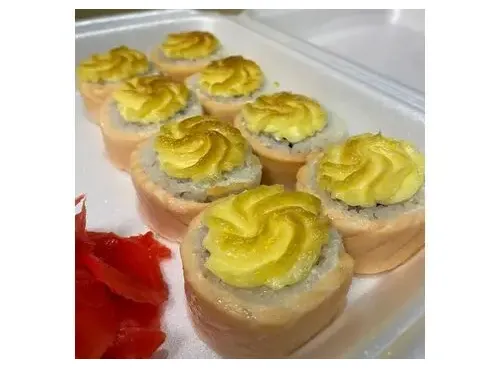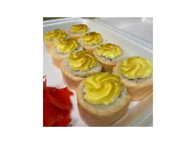 Рис, нори, творожный сыр, лосось 3/4, запеченный под шапкой из японского майонеза. 8шт