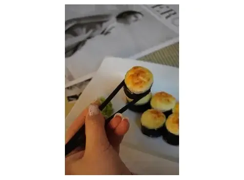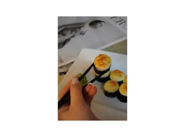 Запеченный с лососем под чесночной шапкой: ролл со сливочным сыром и лососем, запеченный под чесночной шапкой (сыр моцарелла, японский майонез, чеснок)