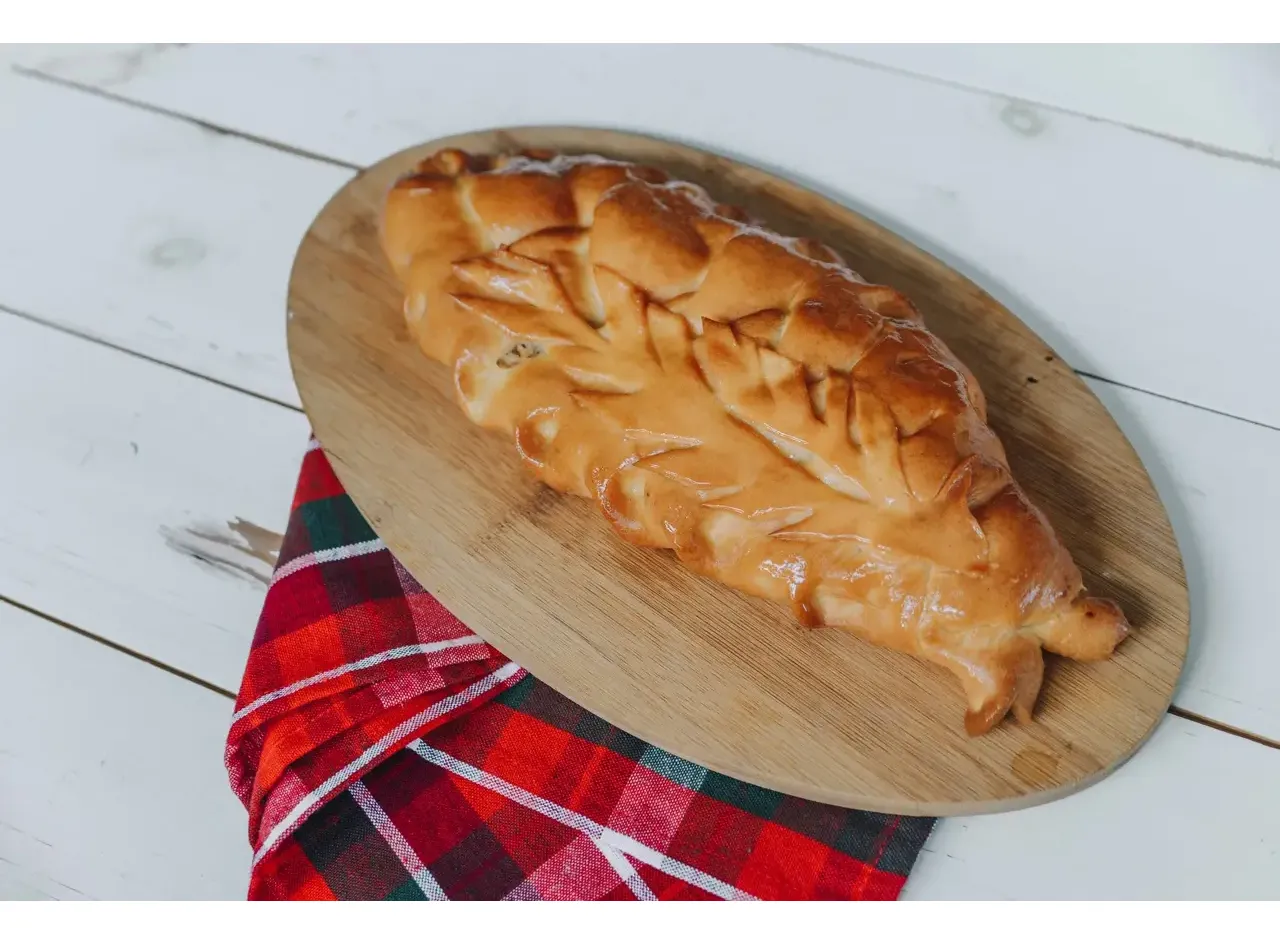 Состав: тесто дрожжевое(мука в/с, яйцо куриное, вода, соль, сахар, масло сливочное), горбуша(филе), рис, лук репчатый, масло растительное, соль, перец