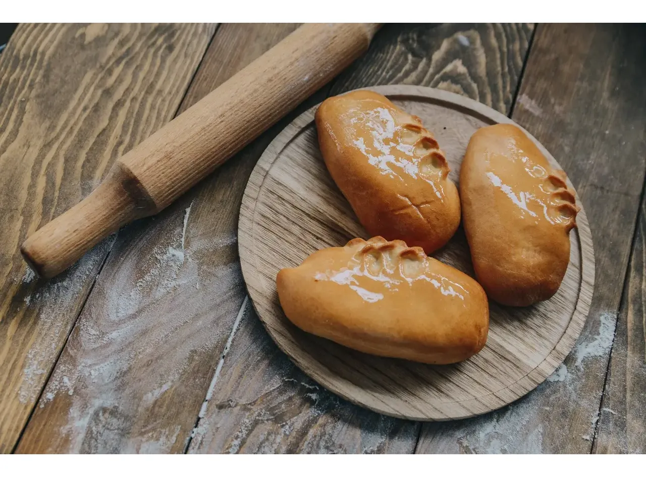 Состав: тесто дрожжевое (мука в/с, яйцо куриное, вода, соль, сахар, масло сливочное), картофель, лук репчатый, масло растительное, соль, перец