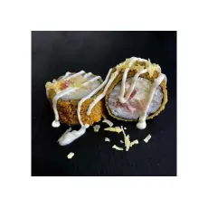 Рис, нори, творожный сыр, креветка, огурец, соус спайси, обвален в кляре и сухарях панко, жареный во фритюре. 8шт.